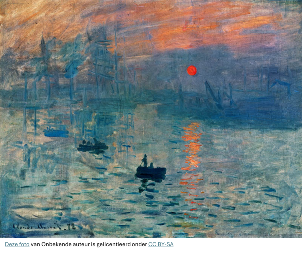 De naam impressionisme komt van een schilderij van Monet: Impression: Soleil levant uit 1872.